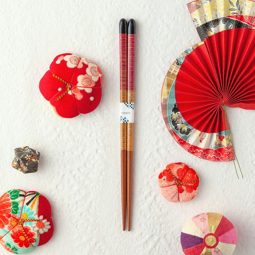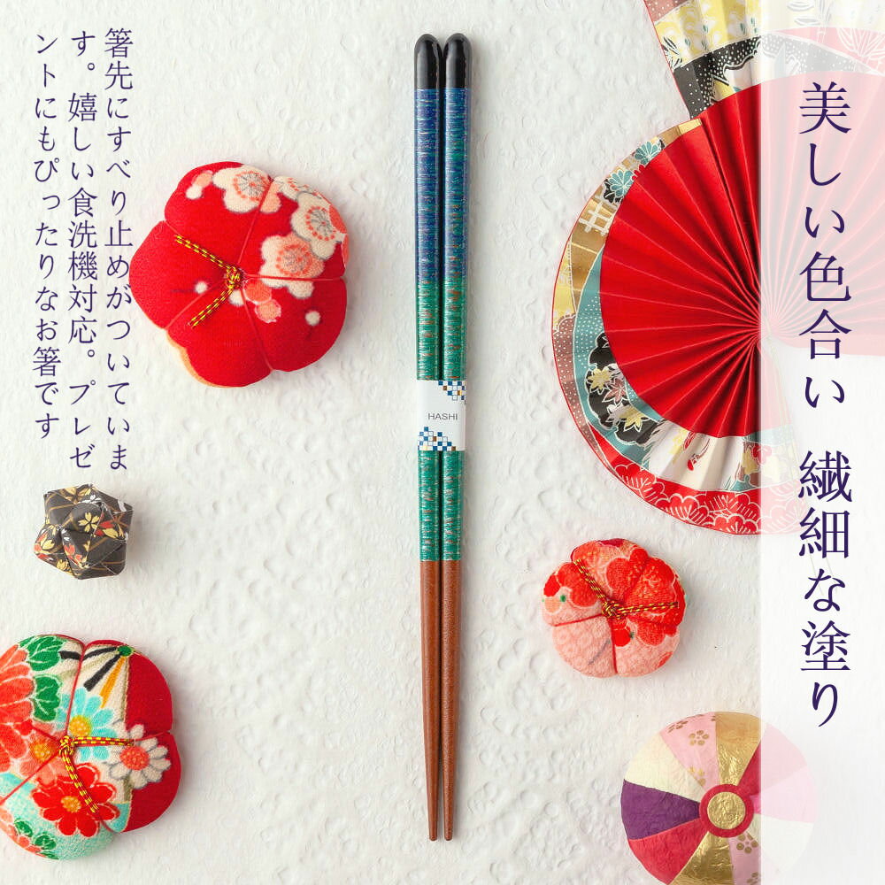 バリエーション 青系/赤系 サイズ(長さ) 青系 23cm 赤系 21cm 素材 天然木・ポリエステルウレタン 箸先 丸・すべり止め付き 製造国 日本 付属品 ●なし(別途購入にて紙箱・桐箱などをお選びいただけます。
